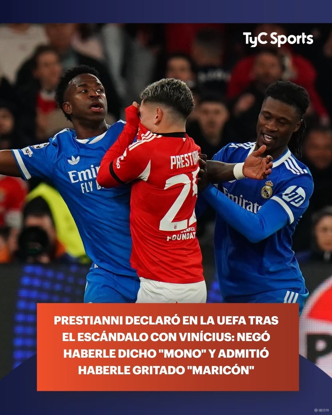 TyC:普雷斯蒂安尼称自己没喊维尼修斯“猴子”,而是喊他基佬