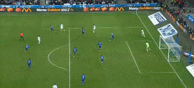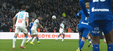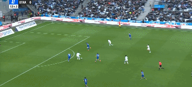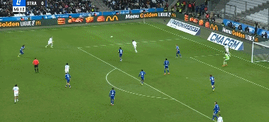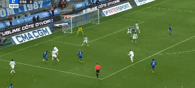 第46分钟,古伊里内切,兜射远角破门扩大比分,马赛2-0斯特拉斯堡