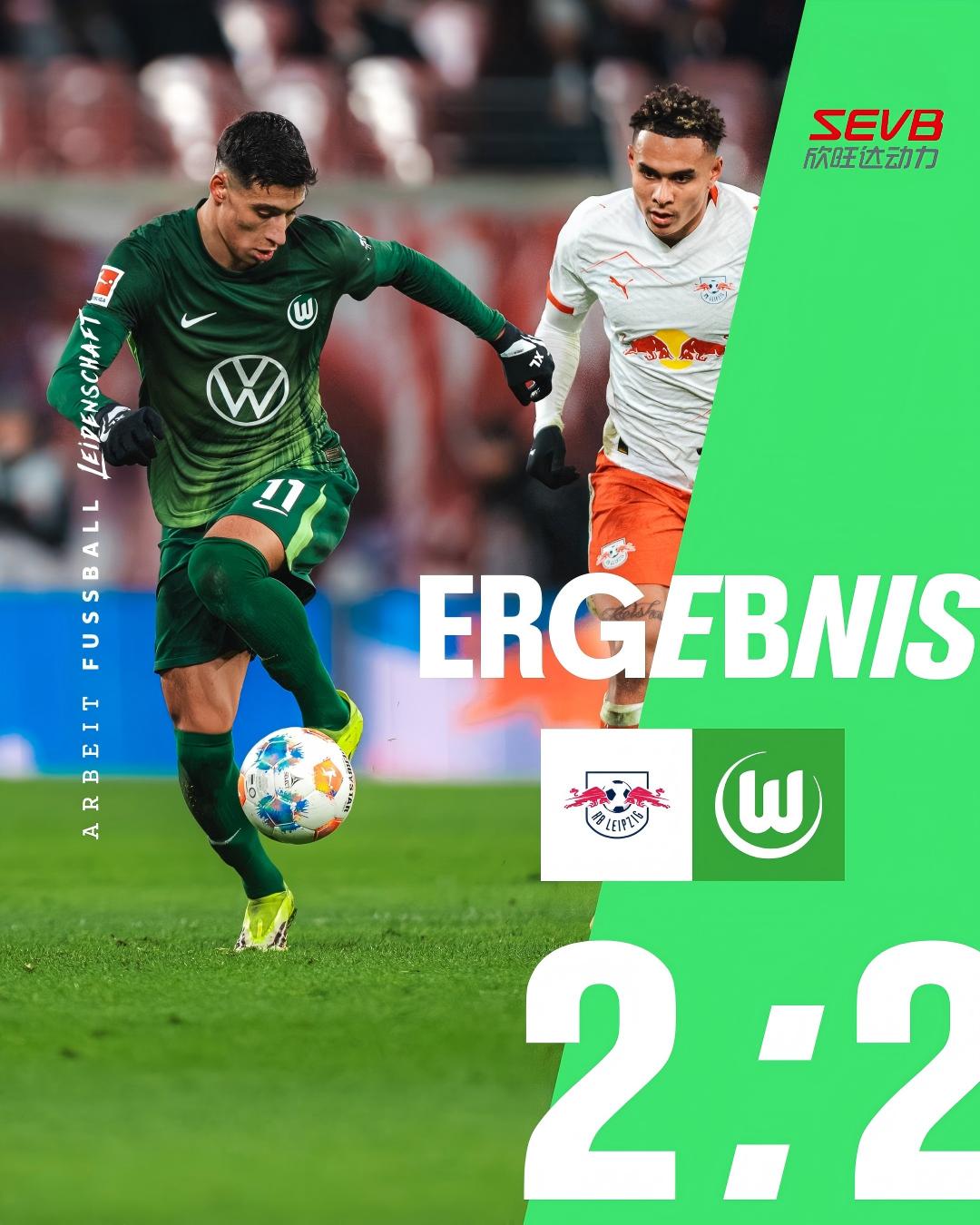 客场作战的沃尔夫斯堡足球俱乐部在红牛竞技场带走 1 分。比赛强度拉满,狼堡两度领先,却都未能守住优势,最终与莱比锡RB 2:2(0:0) 握手言和。