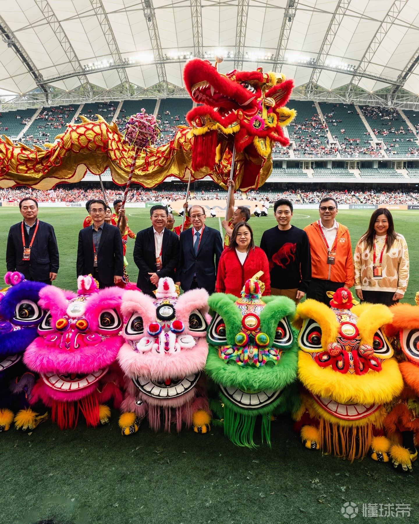 本场比赛在农历新年初五举行,现场还举行了舞狮表演。