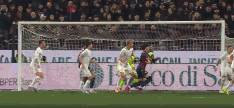 第15分钟,差一点,卡利亚里头球击中立柱