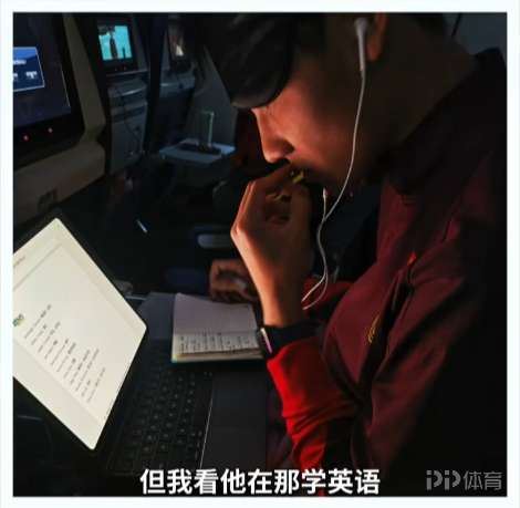 队医王磊:“这个队里面,我看大约能有80%的孩子都在用多邻国,他们这个手机都有这个软件、都在学。最明显是毛伟杰,从广州飞来的飞机上,我拍了一张照片,大家都在睡觉,他坐最后一排,我正上卫生间,我看他在那儿看ipad,我还想说,这么晚不睡,但我看他在那学英语,都在飞机上学英语。”