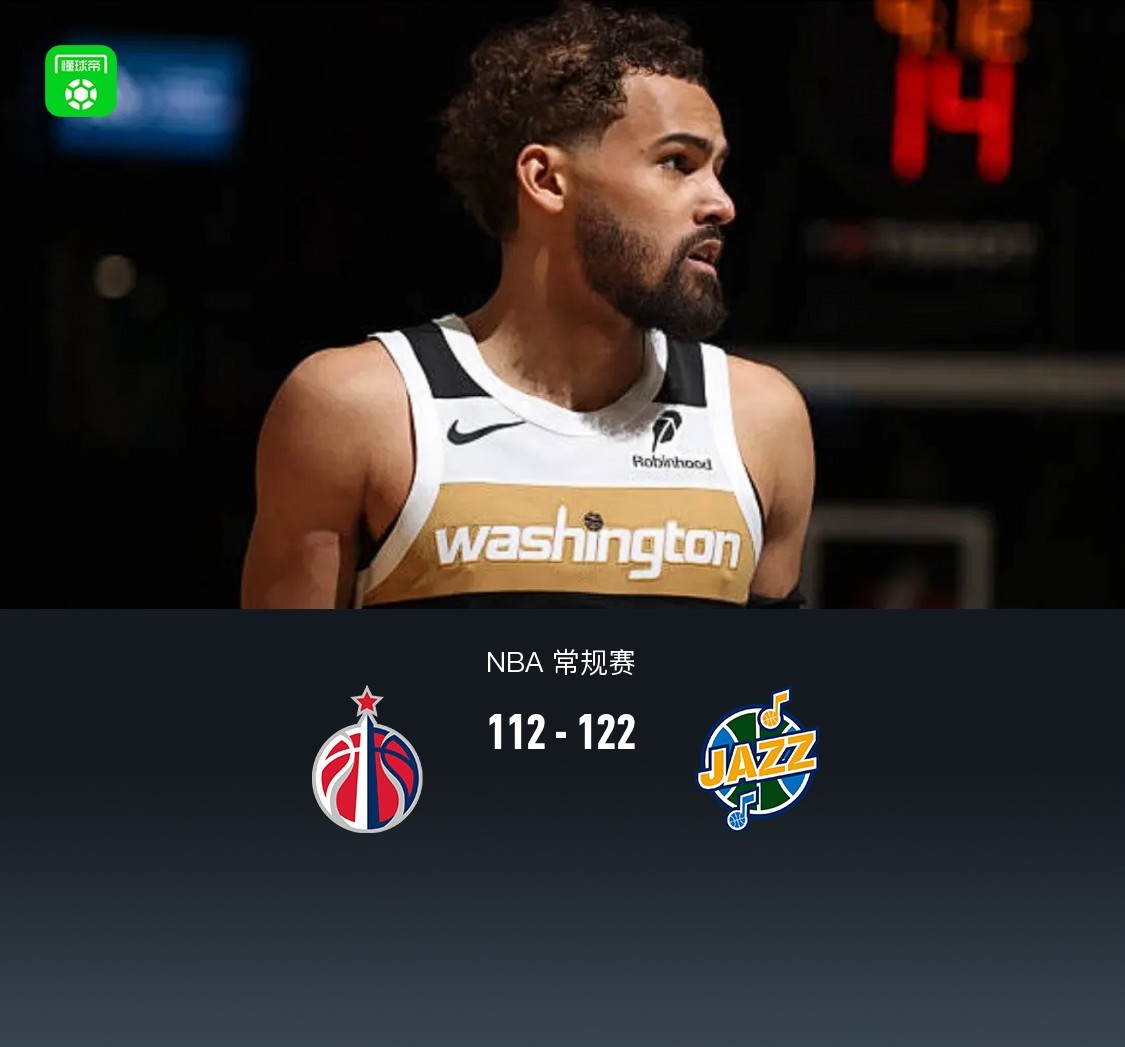 第四节,开节奇才里斯连得4分追至5分分差,紧跟爵士科迪-威廉姆斯、森萨博得分再度拉大至10分,随后双方持续保持10分上下分差,最终奇才112-122不敌爵士。