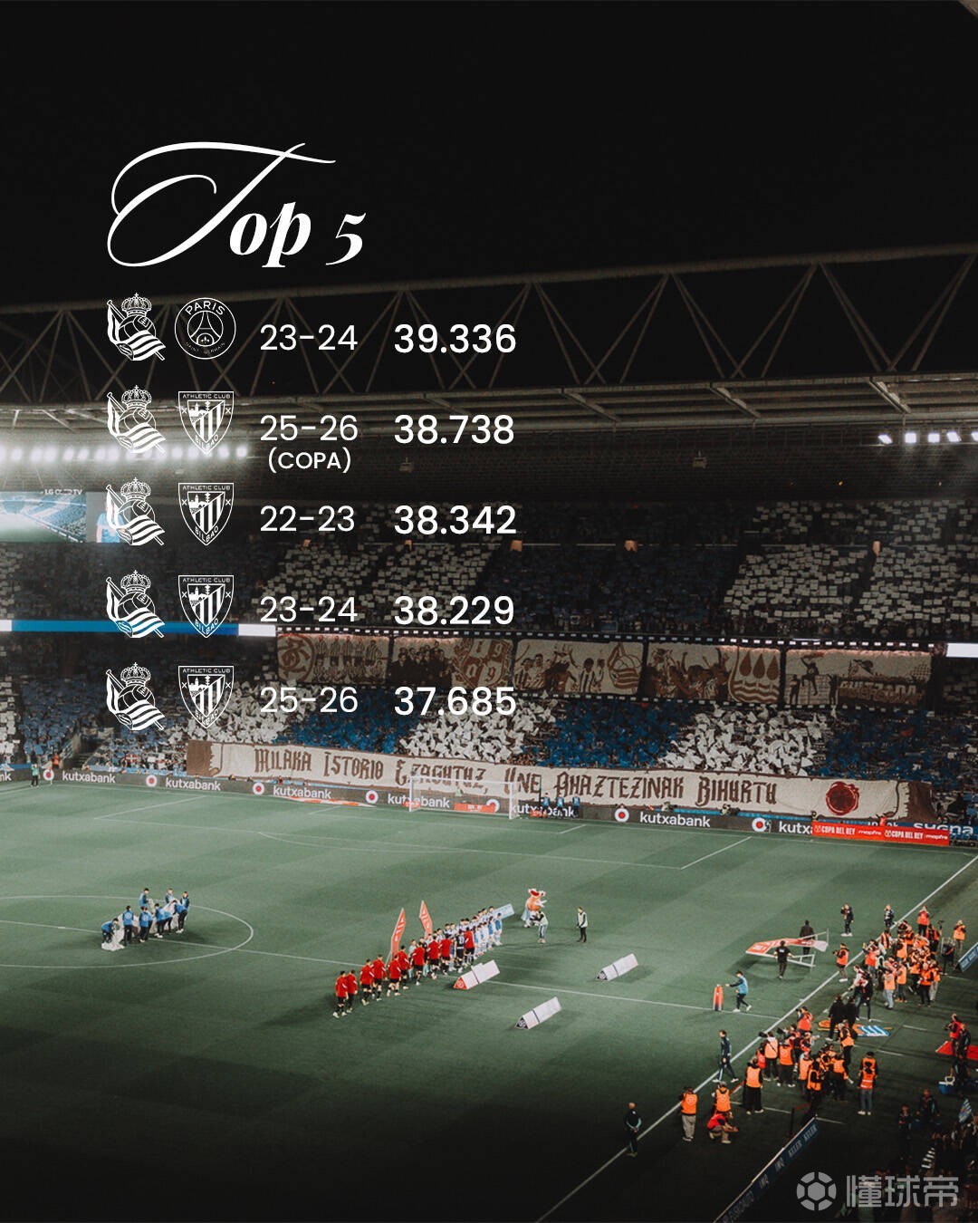 这场比赛成为了皇家社会队史上座人数第二多的比赛,共有38738名球迷来到了现场观赛。