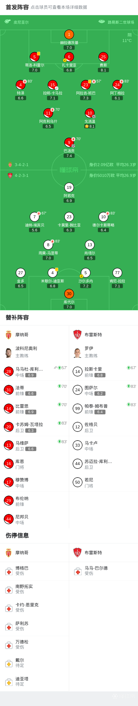 第78分钟,戈洛温劲射破门,帮助摩纳哥扩大比分,摩纳哥2-0布雷斯特