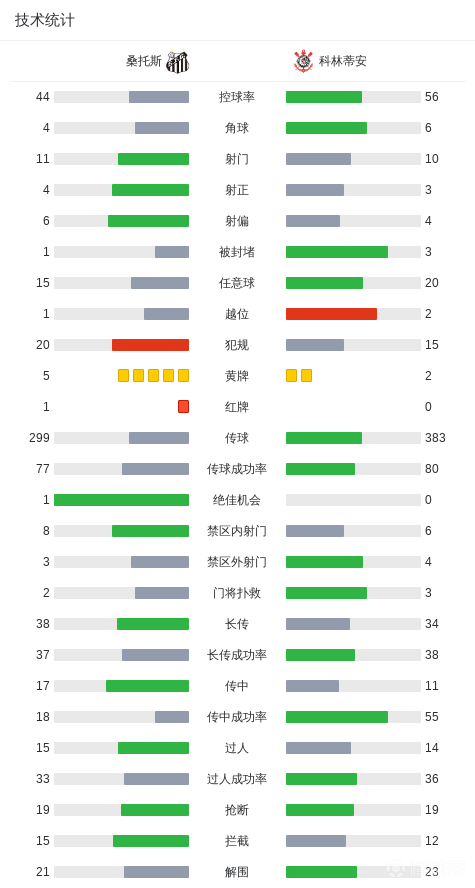 北京时间3月16日巴西足球甲级联赛第6轮,桑托斯主场对阵科林蒂安。桑托斯加布里埃尔-巴博萨破门。上半场德佩首开记录随,随后内马尔助攻巴博萨破门扳平比分。第87分钟佩雷斯防守犯规两黄变一红被罚下场。最终比分桑托斯 1-1 科林蒂安。