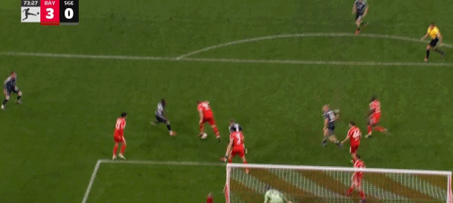 第77分钟,凯恩送点,伯卡特命中扳回一球,法兰克福1-3拜仁