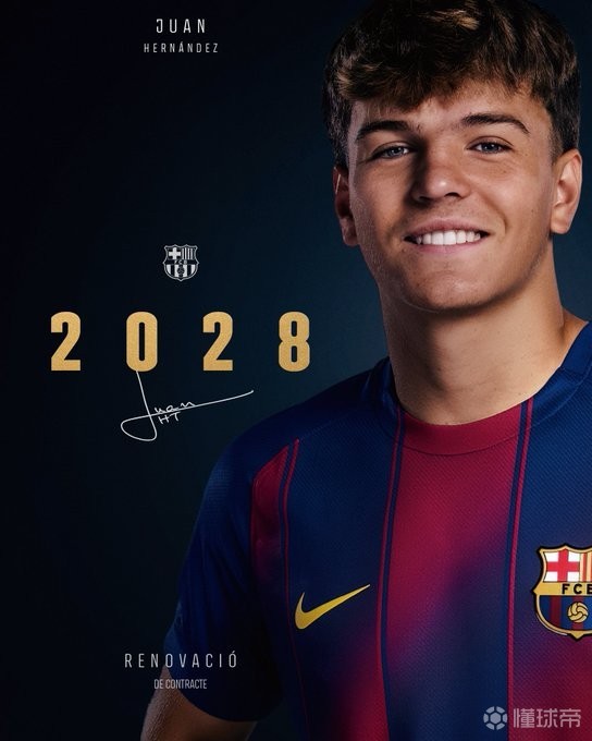 官方:巴萨和胡安-埃尔南德斯续约至2028年,附带延长1年选项