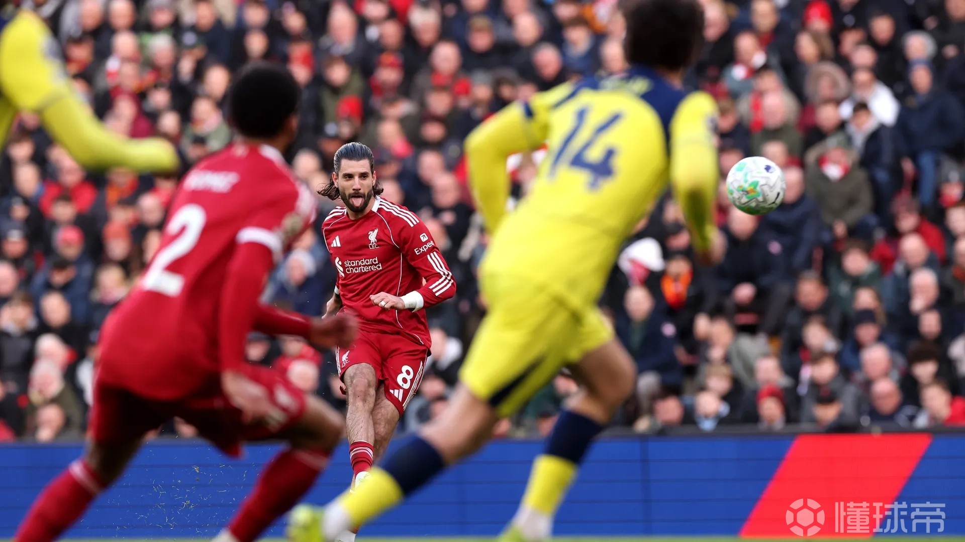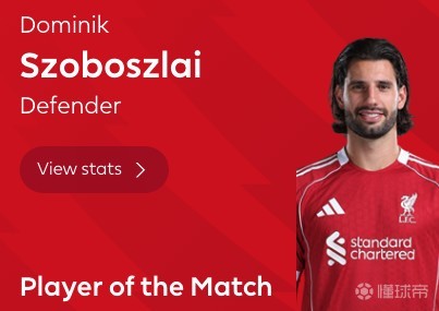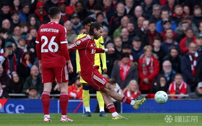 半场战报:利物浦1-0热刺,索博斯洛伊任意球破门,加克波中柱