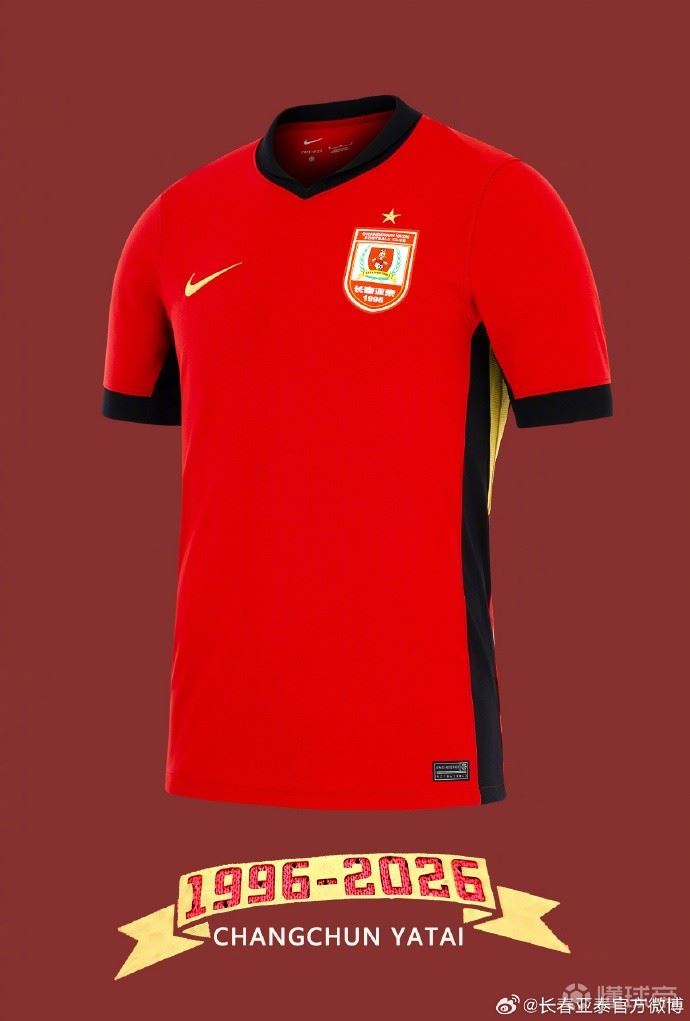 亚泰2026赛季主场球衣:致敬俱乐部成立30周年,融入金色点缀